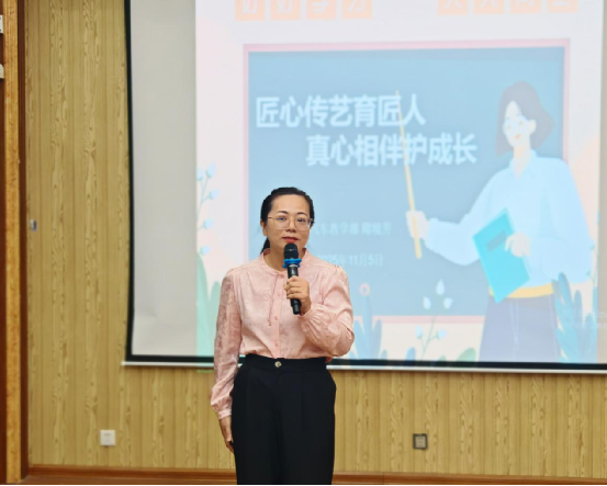 李美娜老师引用习近平总书记的名言——“一个人遇到好老师是人生的幸运,一个学校拥有好老师是学校的光荣,一个民族源源不断涌现出一批又一批好老师则是民族的希望”,开启了《匠心筑梦,师爱护航》的演讲。她结合教育教学实例,诠释了中职教师的师德:是比学生更早蹲下身、更晚直起腰的执着,是手把手教学时磨厚手掌老茧的付出。她强调,教师传授的不仅是专业技能,更是“差之毫厘,谬以千里”的匠心哲学。